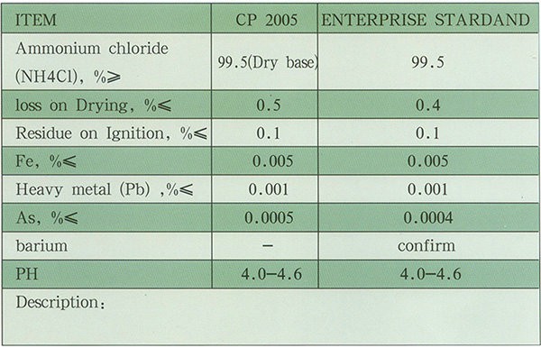 Ammonium chloride content (NH4C1 based on dry basis) g / 100g ≥ 99.5%